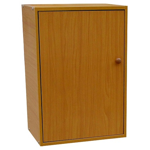 35 5 3 Tier Adjustable Book Shelf With Door Tan Wood Ore